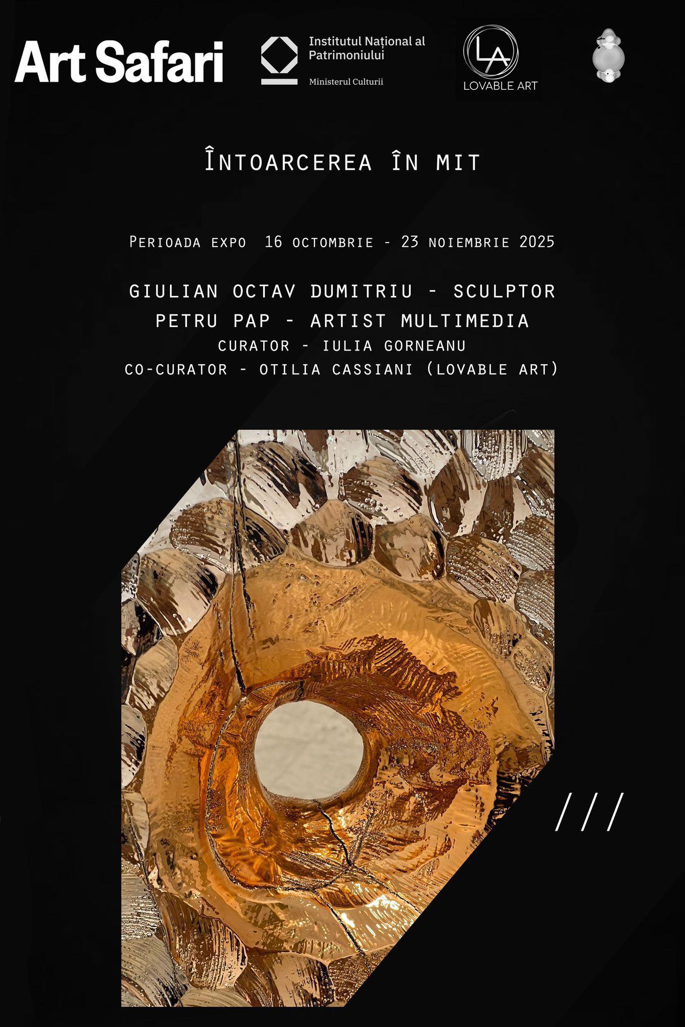 Între 16 octombrie – 23 noiembrie 2025, Art Safari prezintă, în parteneriat cu Institutul Naționala al Patrimoniului și Ministerul Culturii, la Palatul Dacia-România, Lipscani 18-20, București, proiectul expozițional „Întoarcerea în mit” realizată de Giulian Octav Dumitriu – sculptor și Petru Pap – artist multimedia, muzician. Curator – Iulia Gorneanu. Co-curator – Otilia Cassiani (Lovable Art).