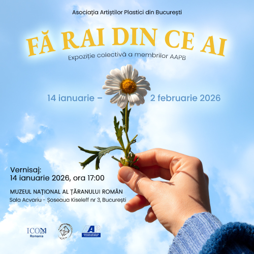 Asociația Artiștilor Plastici București anunță deschiderea expoziției Fă rai din ce ai, un eveniment cultural dedicat artei contemporane românești, care va avea loc în perioada 14 ianuarie – 2 februarie 2026, la Muzeul Național al Țăranului Român, Sala Acvariu.