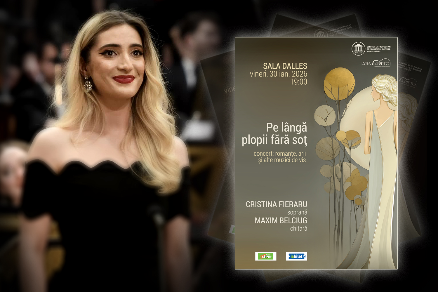 Pe 30 ianuarie 2026, Sala Dalles din București găzduiește un eveniment aparte: senzaționala soprană Cristina Fieraru dă glas pe scenă iubirii în toate formele ei, într-un concert excepțional, intitulat sugestiv “Pe lângă plopii fără soț”. Acompaniată de carismaticul Maxim Belciug, cu chitara sa cât o orchestră, soprana va oferi publicului o seară de emoție și sensibilitate, de dor, de pasiune și de viață, prezentând un program rafinat, care îmbină tandrețea romanțelor cu bogăția expresivă a ariilor de operă și aerul solar al canțonetelor napolitane.