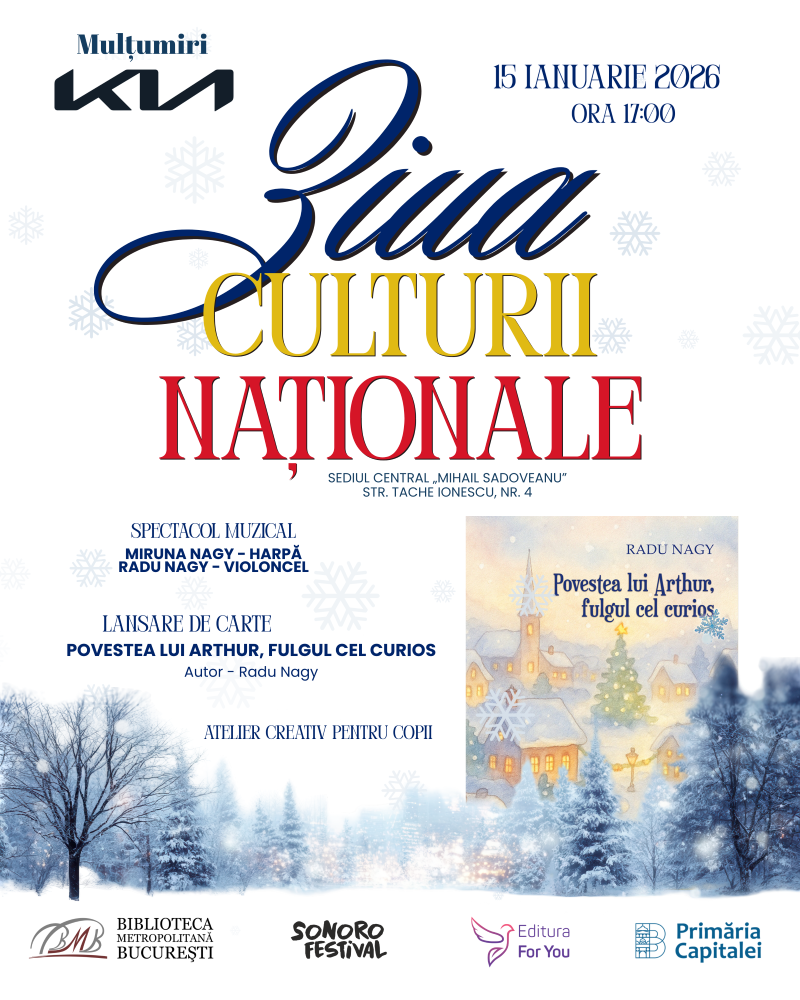 Cu prilejul Zilei Culturii Naționale, Primăria Municipiului București, prin Biblioteca Metropolitană București deschide anul 2026 printr-un eveniment cultural de excepție, dedicat copiilor și familiilor, în care literatura, muzica și creativitatea se întâlnesc într-o experiență unică, spectaculoasă și profund formativă. Acesta va avea loc joi, 15 ianuarie 2026, de la ora 17:00, la Sediul Central „Mihail Sadoveanu” al Bibliotecii Metropolitane București, din str. Tache Ionescu nr. 4, București.