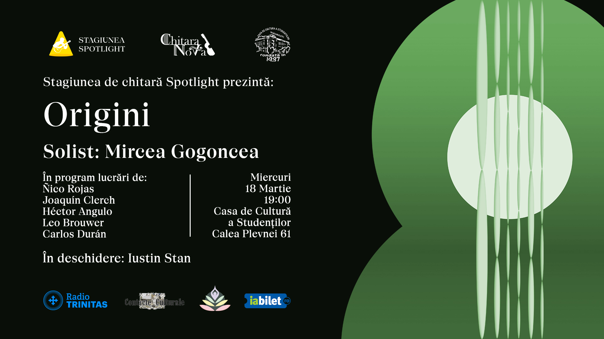 Evenimentul este organizat în cadrul Stagiunii de Chitară Spotlight, organizat de Asociația ChitaraNova și cu sprijinul Casei de Cultură a Studenților din București, alături de partenerii media ai proiectului: Radio Trinitas și Conexiuni Culturale.