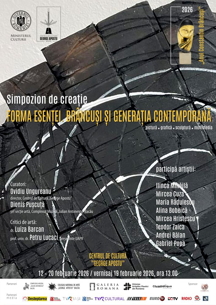 În contextul celebrării Anului Constantin Brâncuși, un reper major pentru cultura română și patrimoniul artistic universal, Centrul de Cultură „George Apostu”, instituție aflată în subordinea Ministerului Culturii, devine puntea de legătură între sacralitatea gestului brâncușian și dinamismul artei contemporane, prin organizarea Simpozionului de creație „Forma Esenței. Brâncuși și generația contemporană”, în perioada 12–20 februarie 2026, pe multiple paliere: pictură, grafică, sculptură și multimedia.