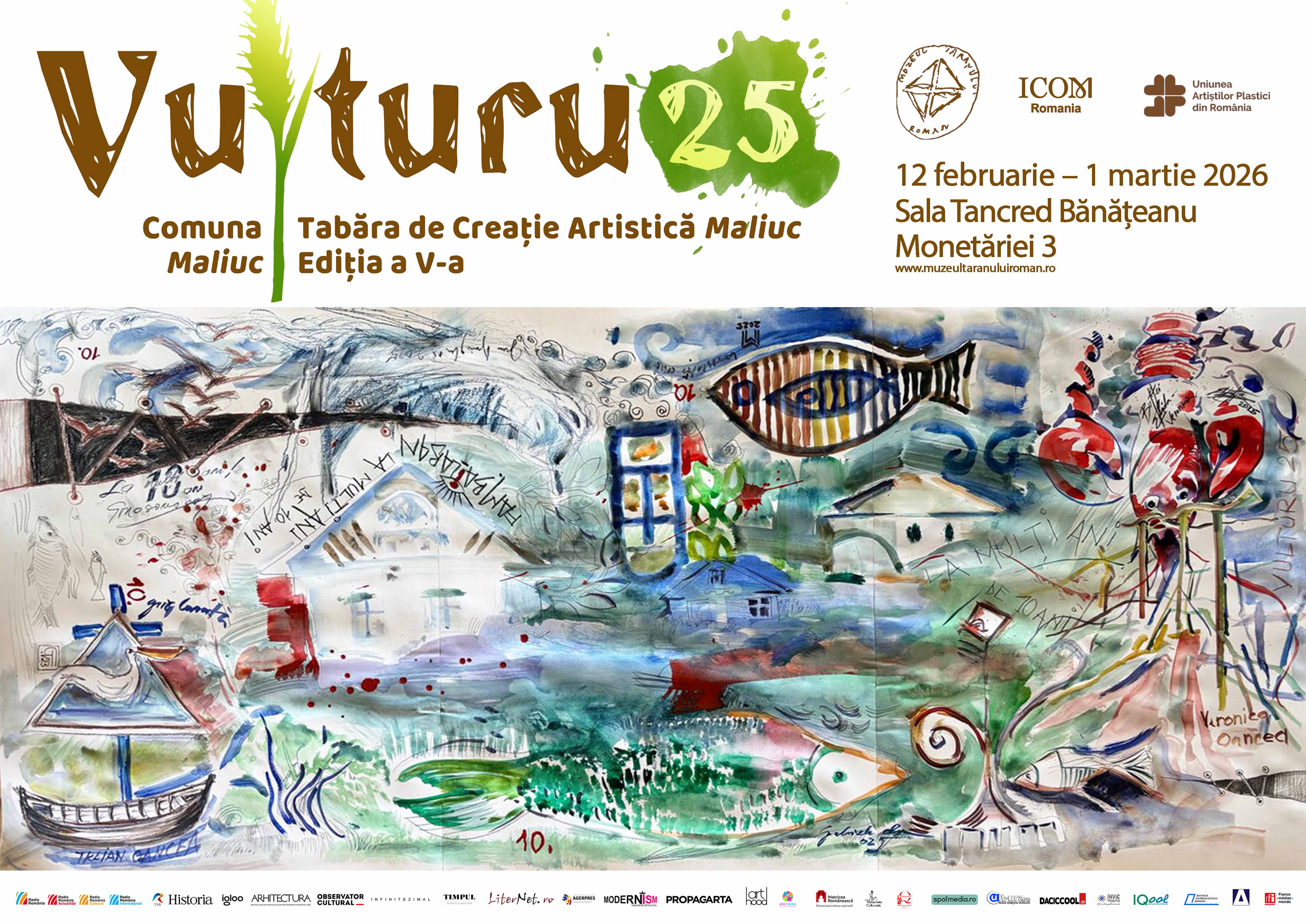 Muzeul Național al Țăranului Român, Uniunea Artiștilor Plastici din România (Filiala București și Filiala Tulcea) și Dr. Adrian Balaban vă invită joi, 12 februarie 2026, ora 17.00, la Sala Tancred Bănățeanu, la vernisajul expoziției colective de artă plastică intitulată Vulturu 25.