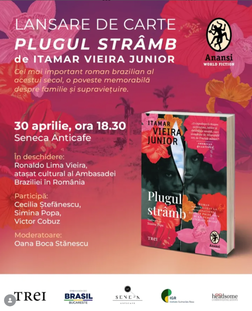 Editura Trei, prin imprintul Anansi. World Fiction, alături de Ambasada Braziliei în România, îi invită pe iubitorii de literatură din București la lansarea romanului Plugul strâmb de Itamar Vieira Junior, considerat cea mai importantă carte braziliană a acestui secol.