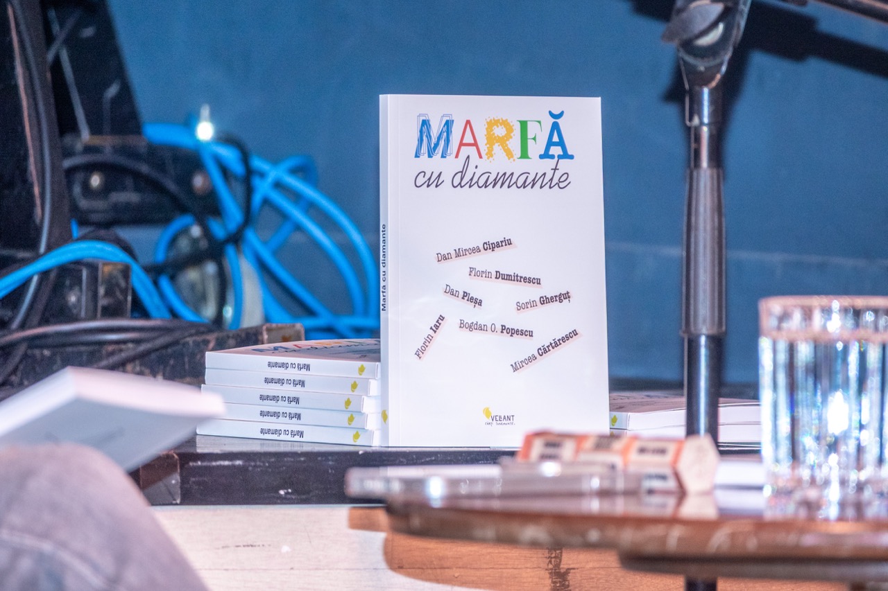 Miercuri, 15 aprilie 2026, de Ziua Mondială a Artei, Sala Teatrelli a devenit neîncăpătoare pentru un show de poezie și blues: „Marfă cu diamante”, organizat de Asociația Euro CulturArt & CREART și co-finanțat de: AFCN (Administrația Fondului Cultural Național). Co-producător: Radio România Cultural. Curator: Ana Daniela Sultana. Producător: Anamaria Spătaru. Membrii grupului MARFĂ – Dan Mircea Cipariu, Florin Dumitrescu, Sorin Gherguț, Dan Pleșa și Bogdan O. Popescu – alături de invitatul special Florin Iaru au legat biografia și realitatea de poezia trăită ori visată! Mike Godoroja & Blue Spirit au emoționat publicul cu piese noi, compuse special pe versurile poeților grupului. Mihai Zgondoiu a trecut de la imagine la text, citind în premieră câteva poeme ce vor apărea pe rețelele de streaming. Secțiunea „Diamante din Cartier” ne-a făcut cunoștință cu viitorul: liceenii Rebecca Maria Cîrcea, Denisa Pleșca, Ioana Maria Vasilescu și Ștefan Matei Marinescu au citit poeme scrise în la atelierelor de scriere coordonate de Dan Mircea Cipariu și Florin Iaru. Publicul a primit autografe pe volumul „Marfă cu diamante” (Editura Vellant). „Marfă cu diamante” anunță, în curând, lansarea primului album de poezie românească pe platformele de streaming (Spotify, Apple Music, YouTube Music). MARFĂ CU DIAMANTE: Poezia e noul tău playlist! Din cartier, pe rețelele de streaming și pe web – www.marfacudiamante.ro . AgențiadeCarte.ro este partenerul media al proiectului.