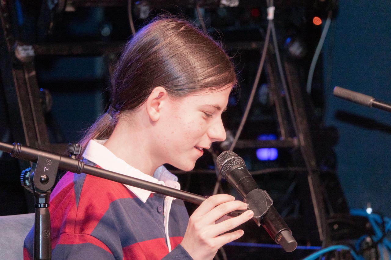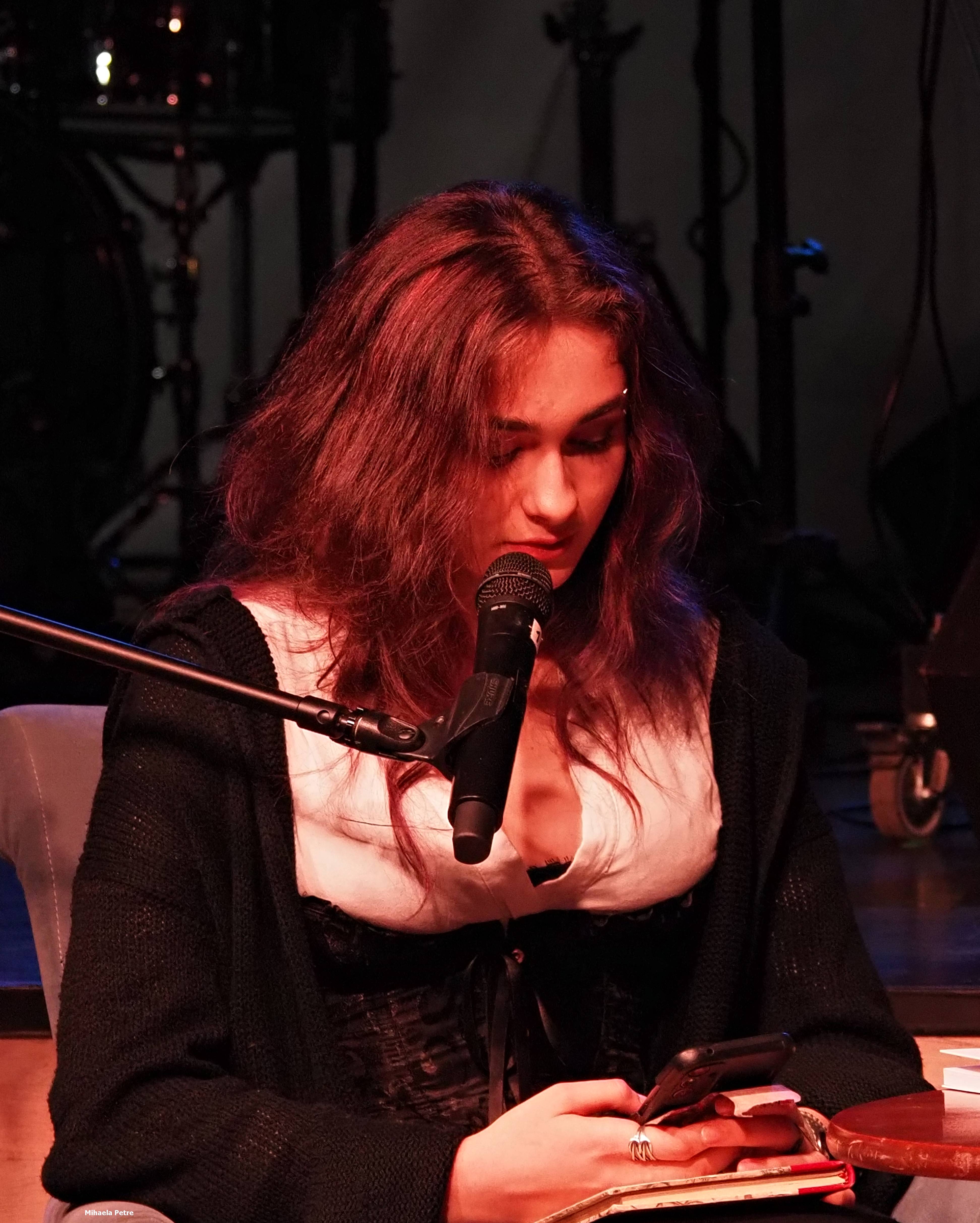 A urmat momentul liceenelor Rebecca Maria Cârcea, care a citit poeziile „Colectiv” și „Consum”, și Denisa Pleșca, care a citit textul „Visez un om fără față”.