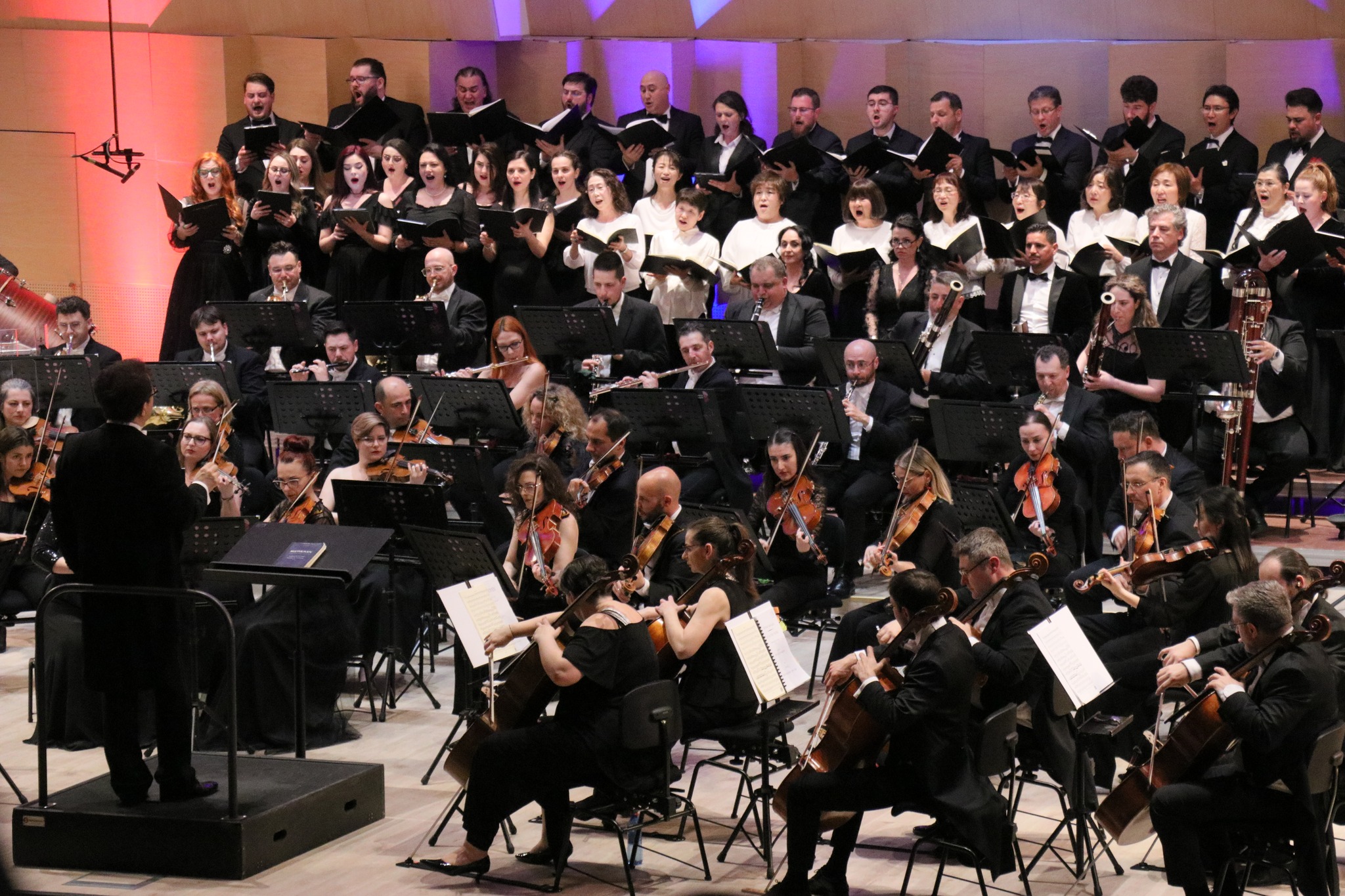Lucrarea monumentală a lui Beethoven, purtând simbolic titlul „Oda Bucuriei”, a reunit pe scenă forțe interpretative impresionante. Alături de orchestră au evoluat Corul Filarmonicii „Paul Constantinescu” Ploiești, pregătit de Eduard Dinu, și membrii Asociației Simfoniei a9-a din Musashino, Japonia, într-o colaborare care a depășit granițele geografice și culturale. Soliștii serii – Laura Eftimie (soprană), Maria Miron Sîrbu (mezzosoprană), Remus Alăzăroae (tenor) și Petre Burcă (bas) – au contribuit la construirea unui final coral de mare intensitate, primit cu entuziasm de public.